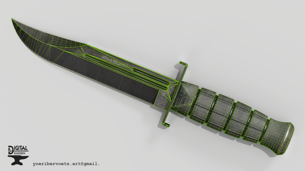 This is a game-ready knife, primarily meant to be used in a first-person setting. The knife is styled after a classic KA-BAR but has been altered so that you should never encounter any trademark issues when using it in your game project. For the same reason, all branding and logos are original as well!